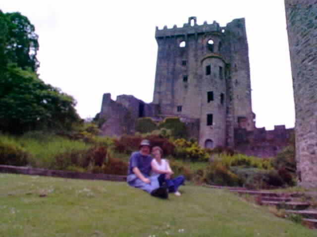 Another taken in the grounds of Blarney Castle. Tom and Pam sitting in the foreground, with Blarney Castle in the background.